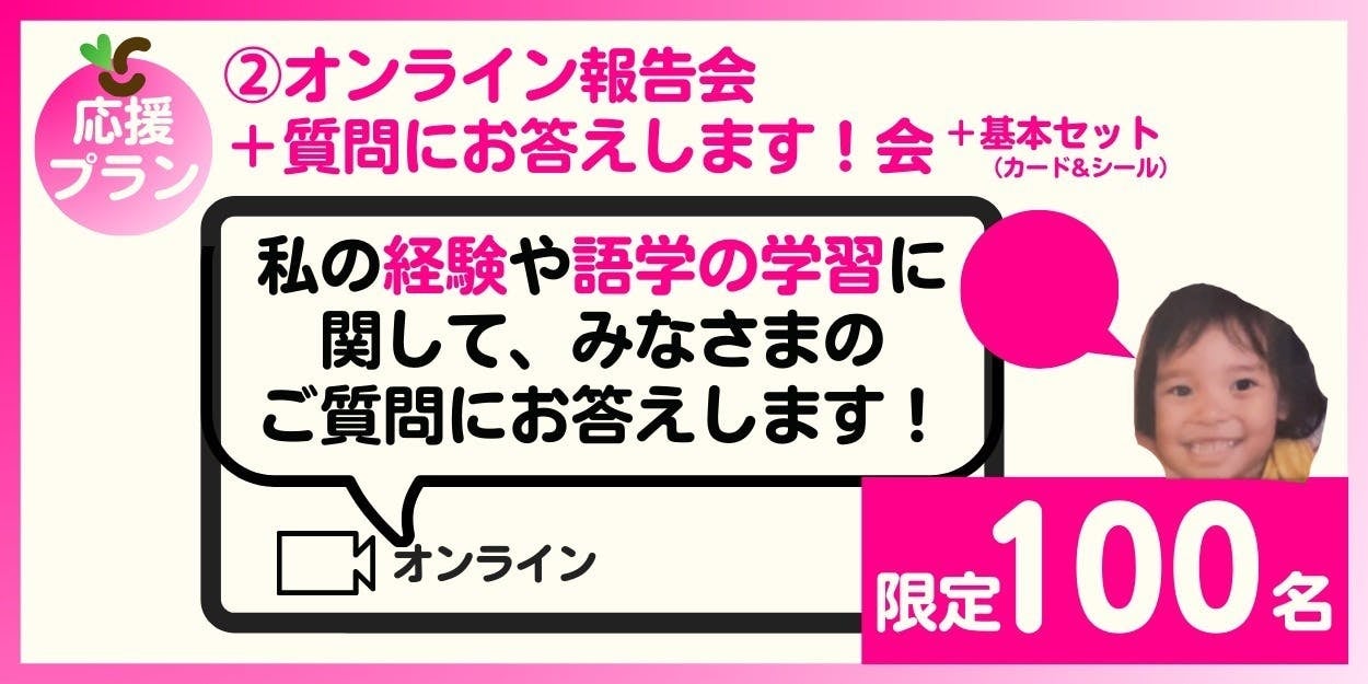 オンライン報告会への参加券に加えて、私自身の経験や語学に関して、みなさまからのご質問を受け、お答えします。