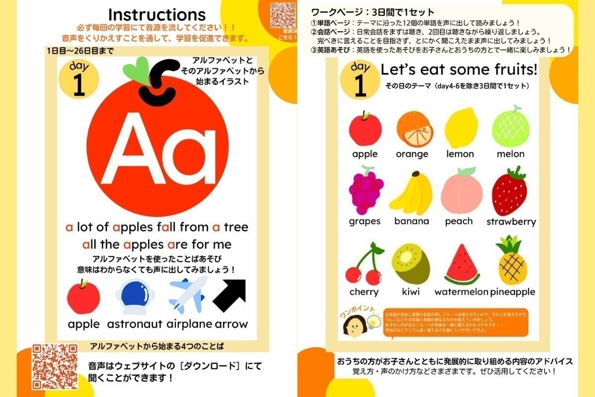 「One, Two, Three, English! おうちでできる英会話ブック」を作成。