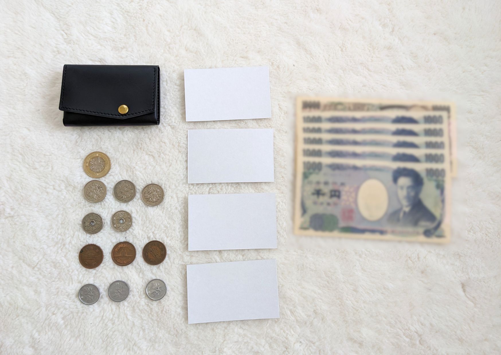 お店のポイントカードや銀行のキャッシュカードでさえ、今やそのほとんどがスマートフォンに集約できるようになりました。なので本当に必要なものは、現金(お札と小銭)を少々、クレジットカードと免許証、プラスαくらいではないでしょうか?