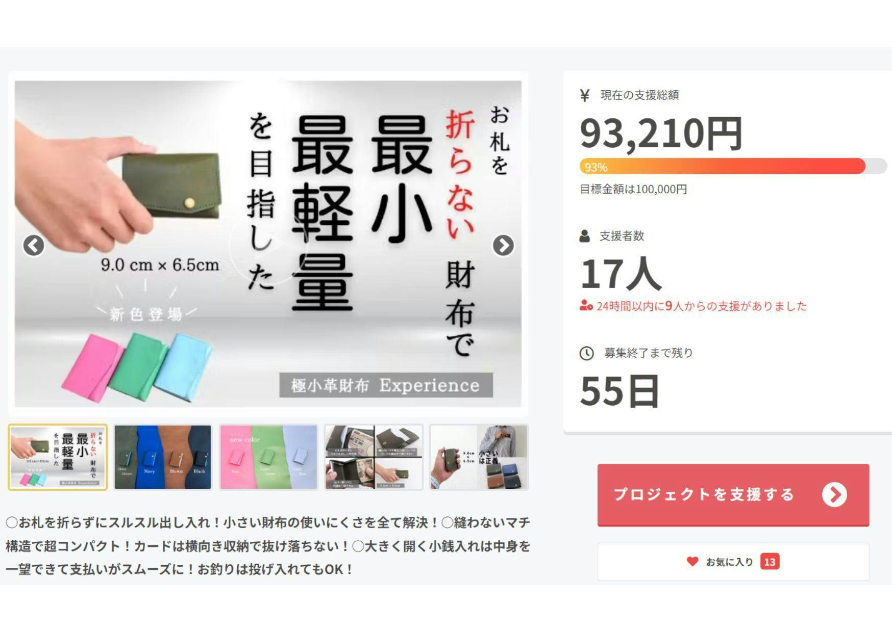 8月4日18時にスタートしました、「独自構造でスルスル出し入れ。まるでお札・摩擦レス。ミニ財布の悩みを全て解決」のプロジェクトがあと少しで100%達成となります。ご支援いただきましたサポーターの皆さま、本当にありがとうございます!