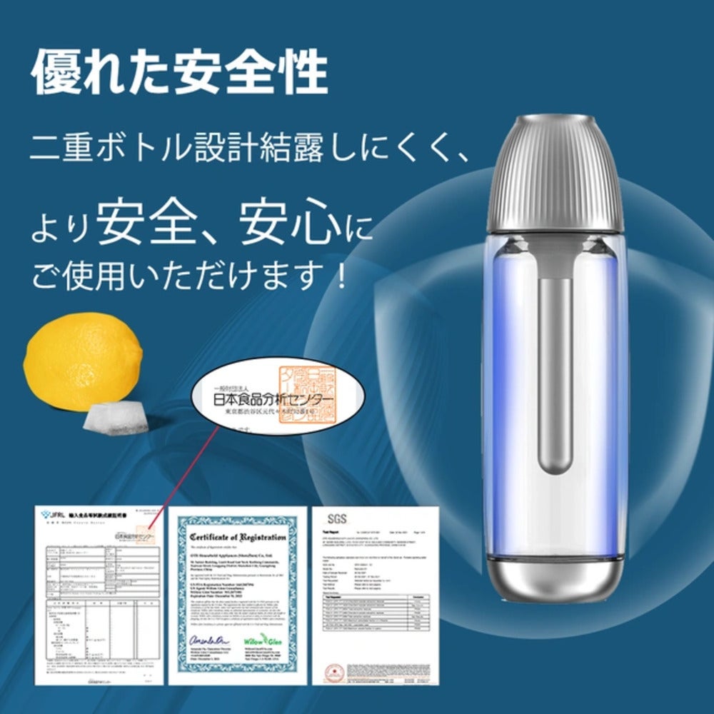 二重構造ボトル設計ボトル表面に結露しにくく、更にFDA、SGS、日本食品分析センター認証取得済み!!