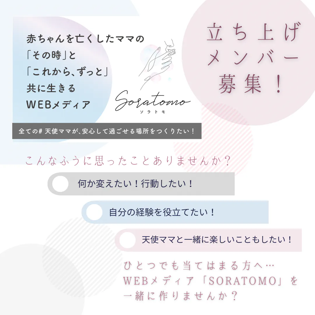 9月のWEB先行公開に向けWEB制作会社との打ち合わせも本格化、同時に各種リサーチ・専門家ヒアリングや細かな作業も増加、さらには新たに「イベント&クリエイター部」の立ち上げも予定するなど活動内容がてんこ盛りのSORATOMOです。現メンバーだけでは各々の負担が大きくなってしまいそうなため、先日より立ち上げメンバーの追加募集を開始いたしました。