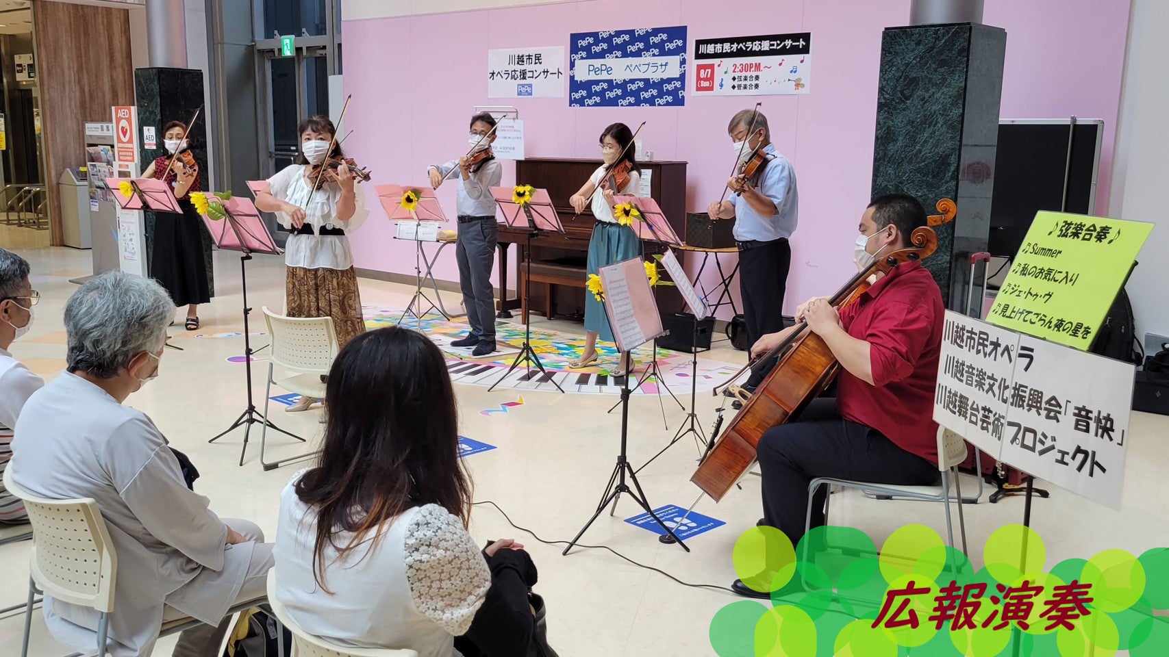 私たちがパートナーとさせていただく川越市社会福祉協議会では、高齢者や子ども、障がい者の皆さんをさまざまな形で支援しています。私たちは、家に閉じこもって孤独に暮らしているお年寄りや、ひとり親の家庭でお母さん・お父さんが働きに出ていて家でひとりぼっちにしている子どもたち、学校になじめず友達も少ない子どもたちに、生の音楽を聴ける機会を提供することで、さわやかな気持ちになったり、心を開くきっかけになってくれたらと思っております。