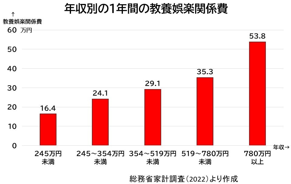 オペラのチケットはとても高額で、プロの演奏になると数万円するので、音楽愛好者でもなかなか手が出せない人が多いです。図は、年収別の1年間の教養娯楽関係費を示したものですが、年収の最も少ない層は最も多い層の1/3以下になっています。ましてや、年金暮らしのお年寄りや、ひとり親世帯の子どもたちなど、オペラはおろか、生の演奏会を聴きにいくことなど、とてもできないのが現状です。