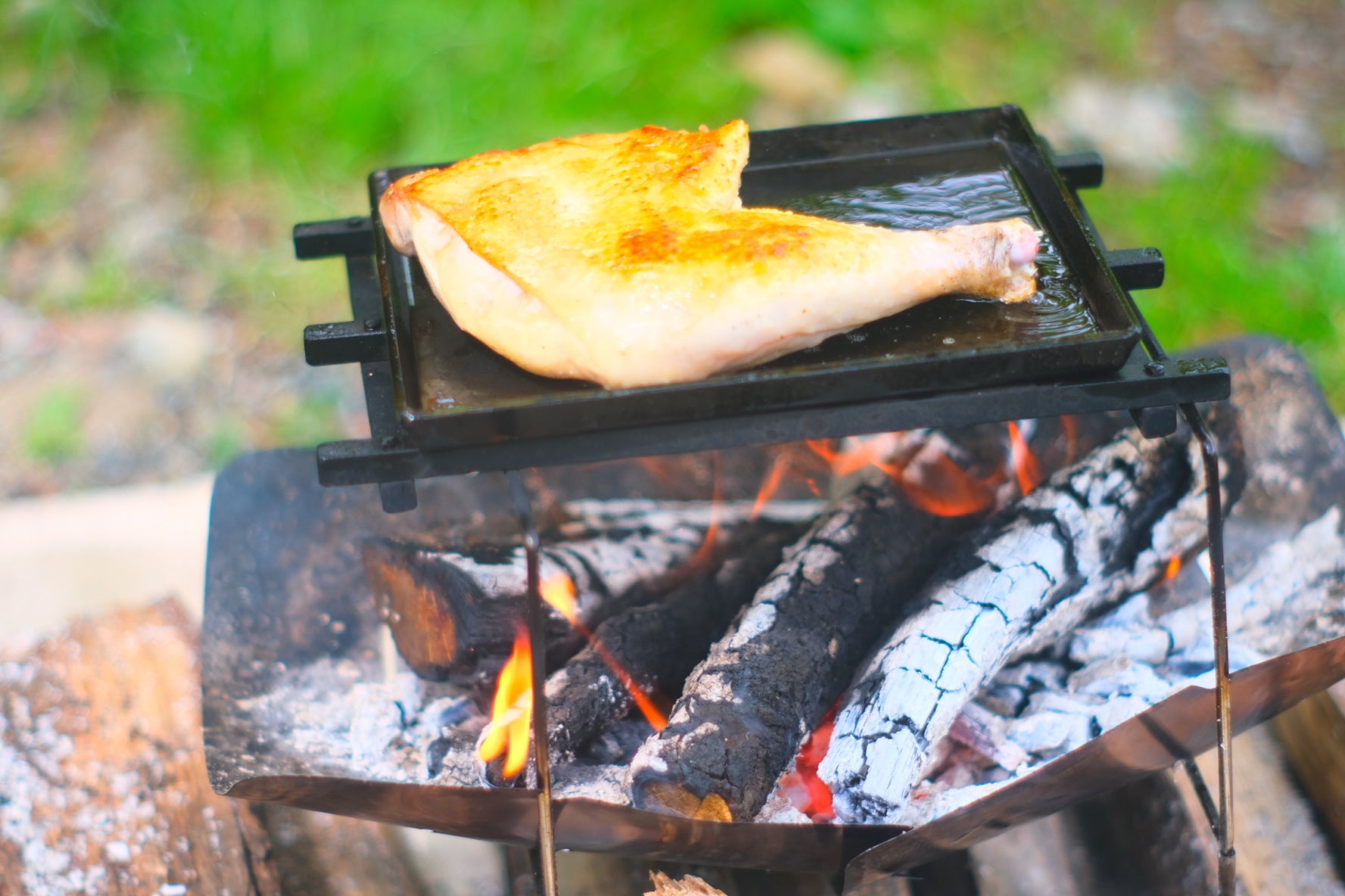 キャンプで焼き、蒸し、揚げの3つの調理に使える鉄板、その名を「三ツ星鉄板」の誕生です!