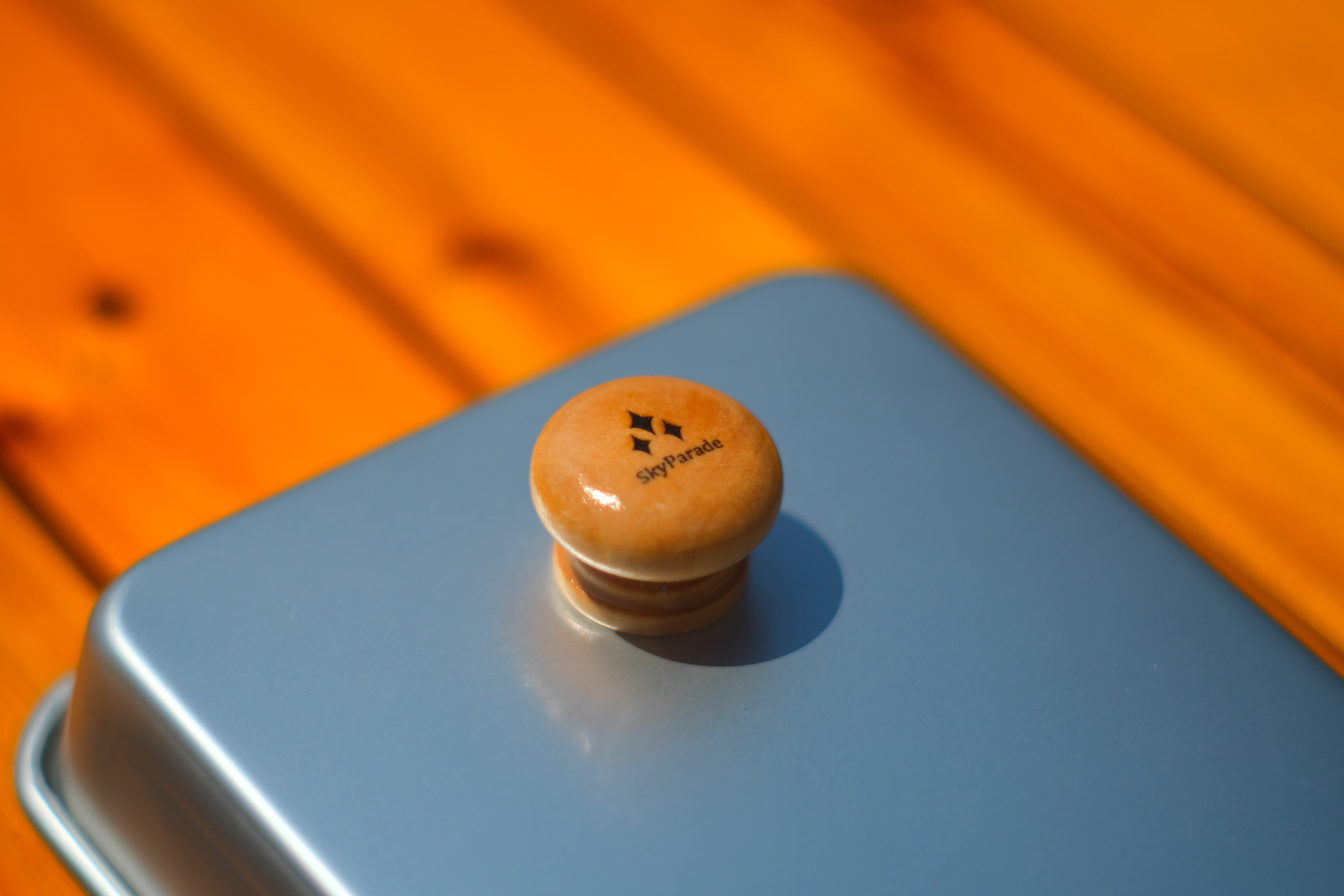 蓋の取手には弊社ブランドロゴをレーザー刻印させていただいております。