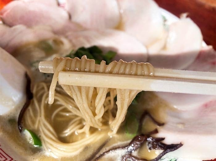 小麦感の強い細麺が泡立つスープを引き上げ、芳醇な鶏の旨味を余すことなく楽しめます。