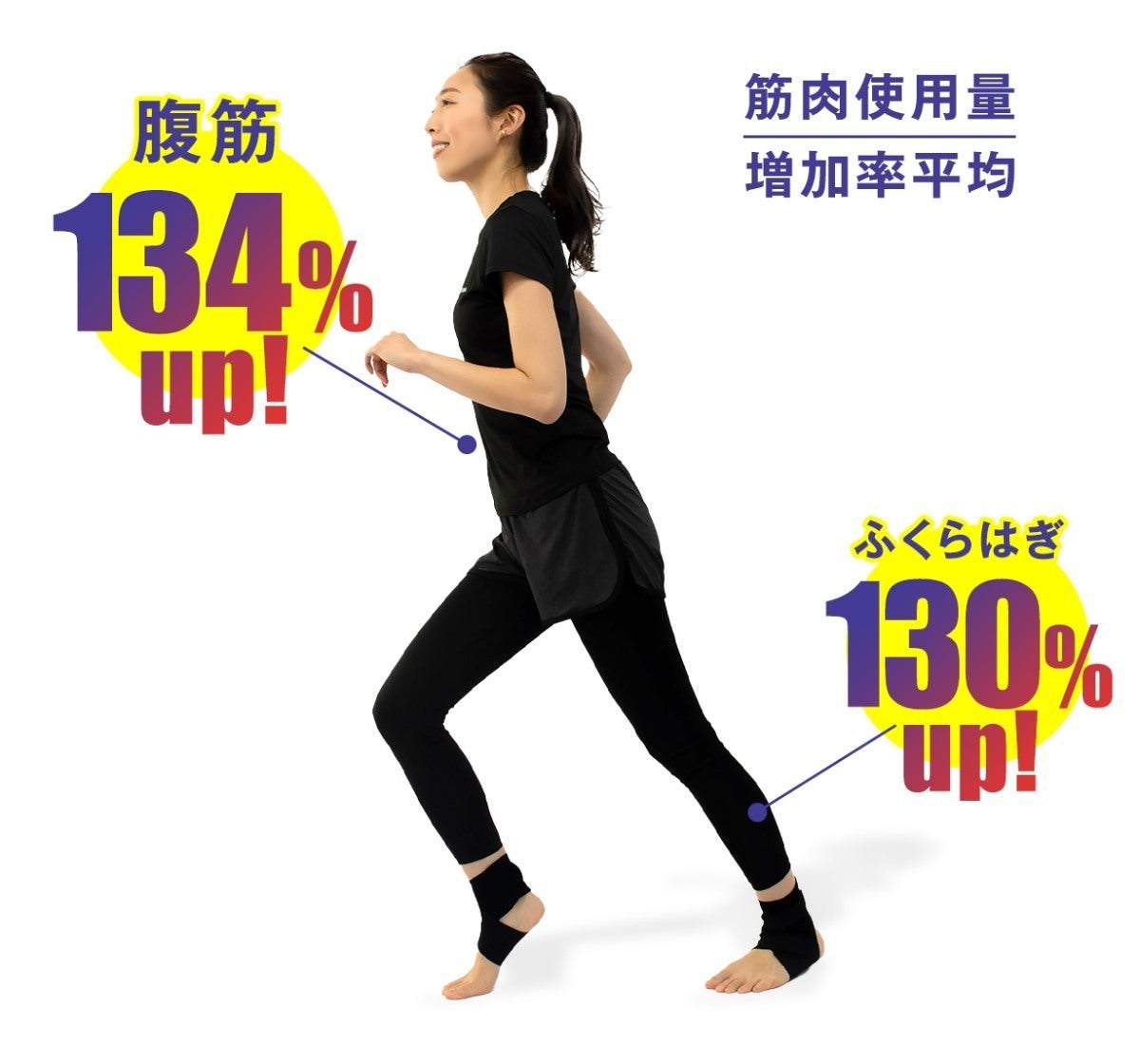 着用時は腹筋やふくらはぎなど 全身に影響する部位の運動効率が上がるので、