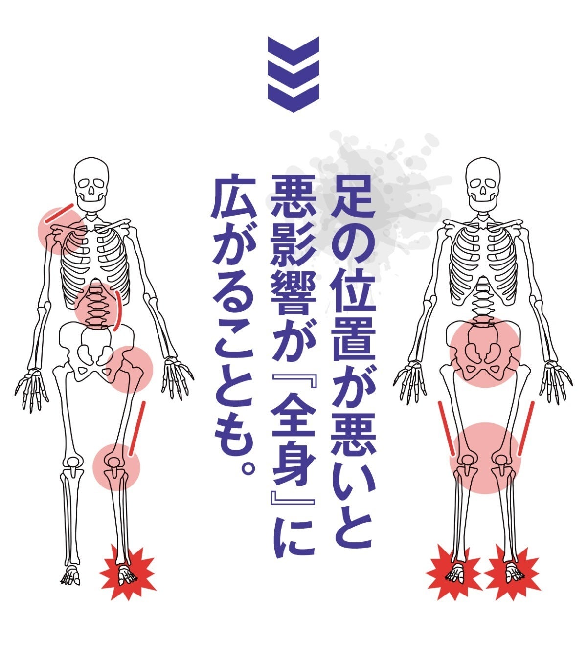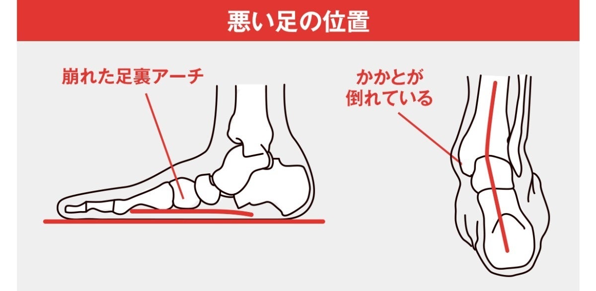 足の位置が悪いことで、全身がぐらぐらと不安定になりアンバランスな状態に。