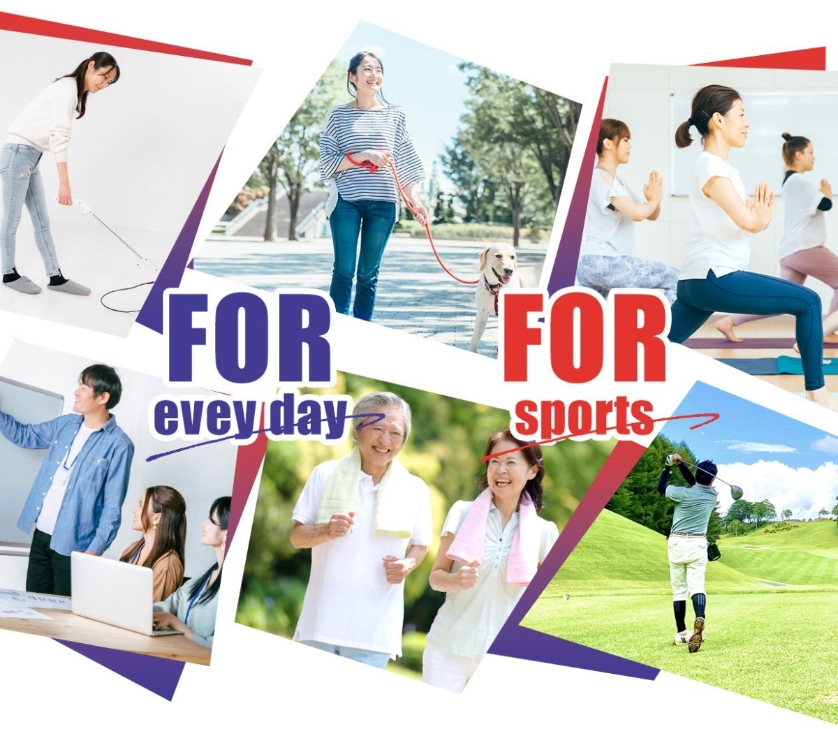 日常生活では掃除・散歩・仕事、運動ではヨガや球技、ゴルフなど幅広いシーンでご活用いただけます。