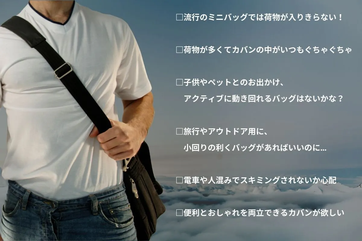 お出かけを思いっきり楽しめるよう、あなたの心配から守ってくれるすごいバッグなんです。