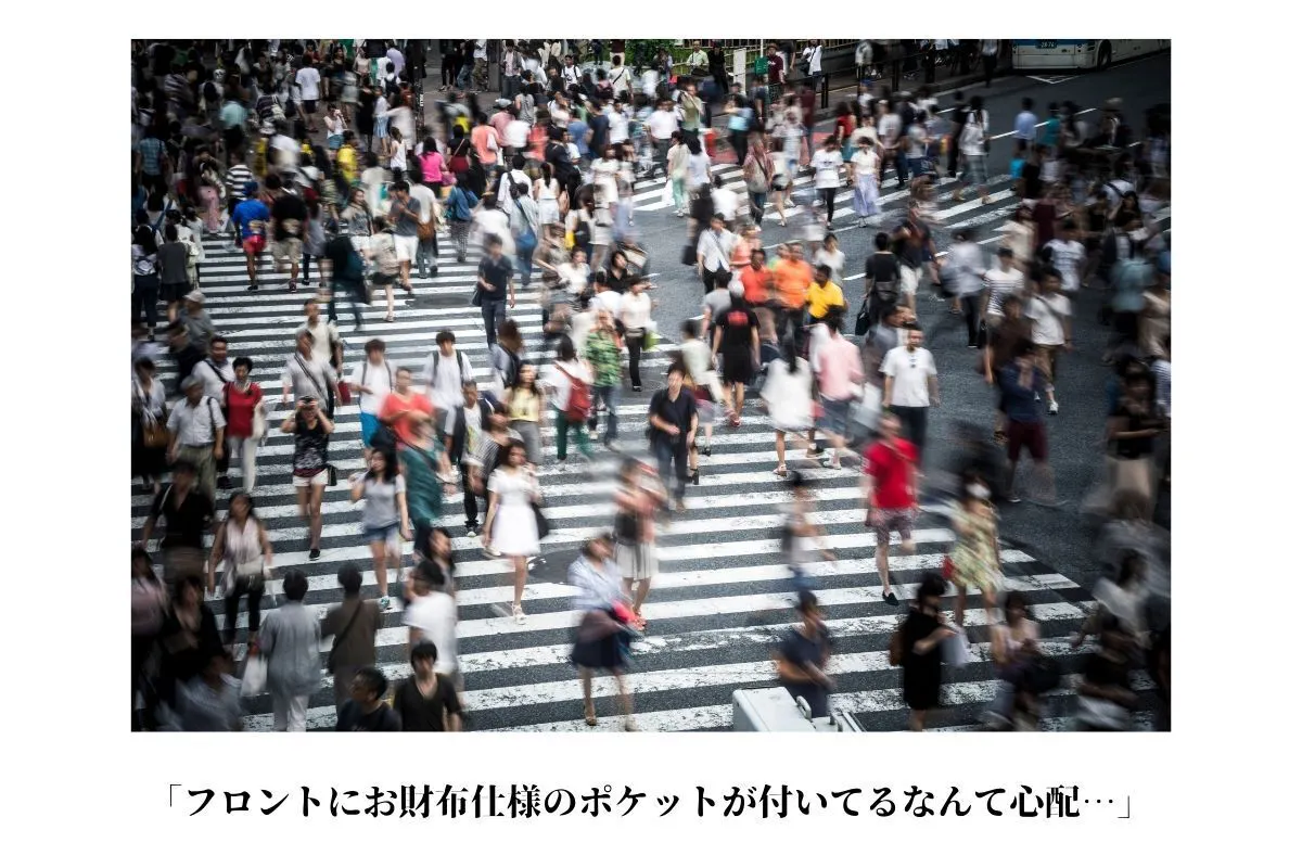 フロントポケットには、スキミング防止シートを採用し、カード情報が抜きとられる危険を限りなく減らしました。