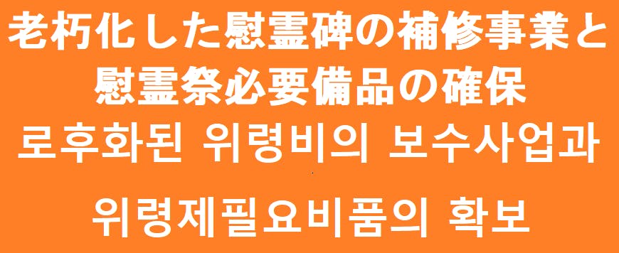 ③위령비와 바깥 울타리등의 파손부위를 보수:약5만엔