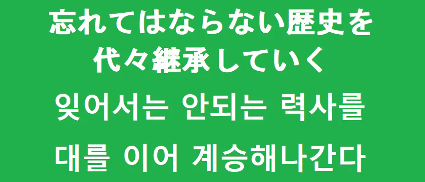 대를 이어 력사를 계승하여 후대들에게 사실을 전하며 참사가 되풀이 않되도록 앞으로도 계속 위령제를 개최해나가겠습니다.