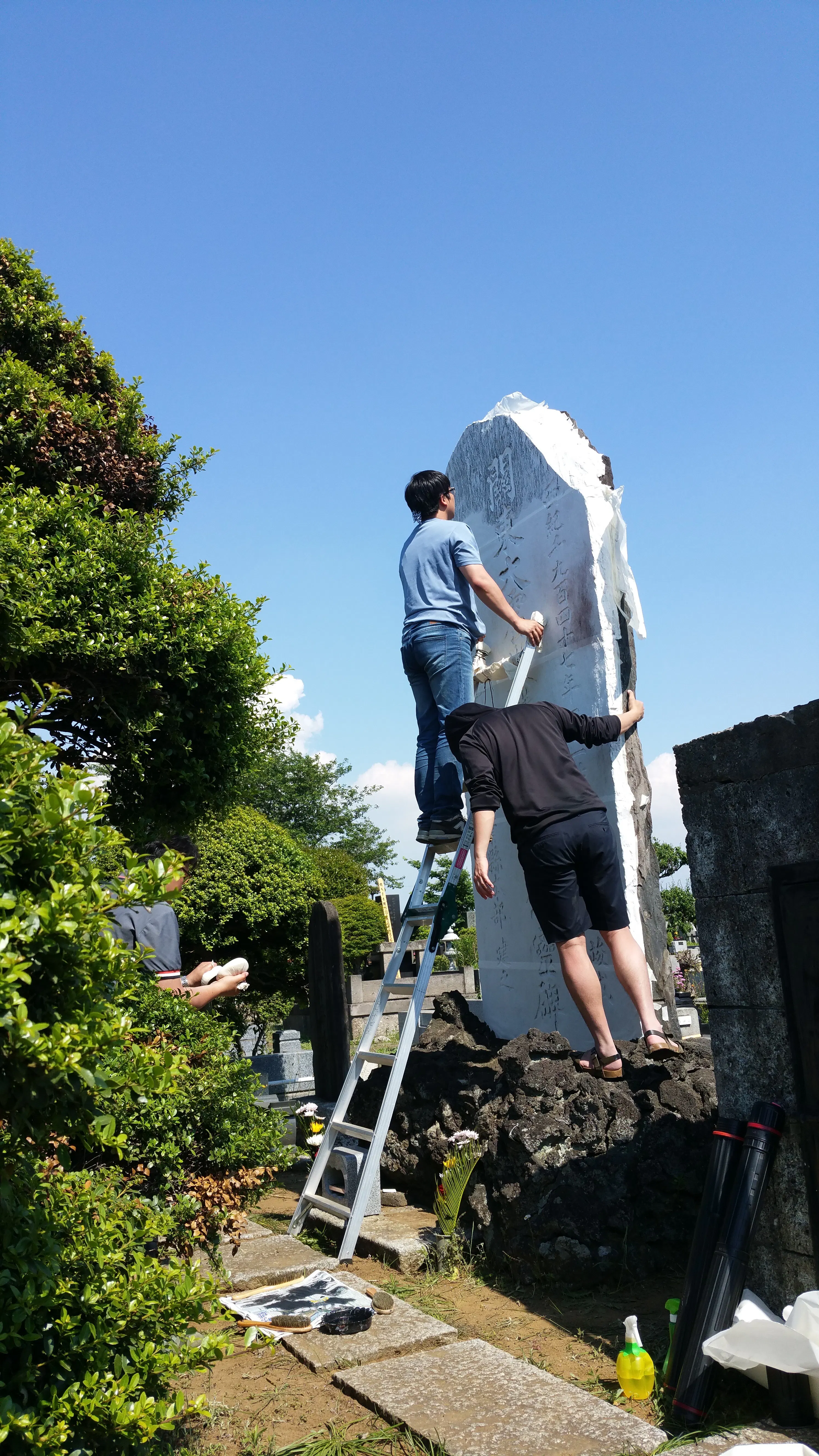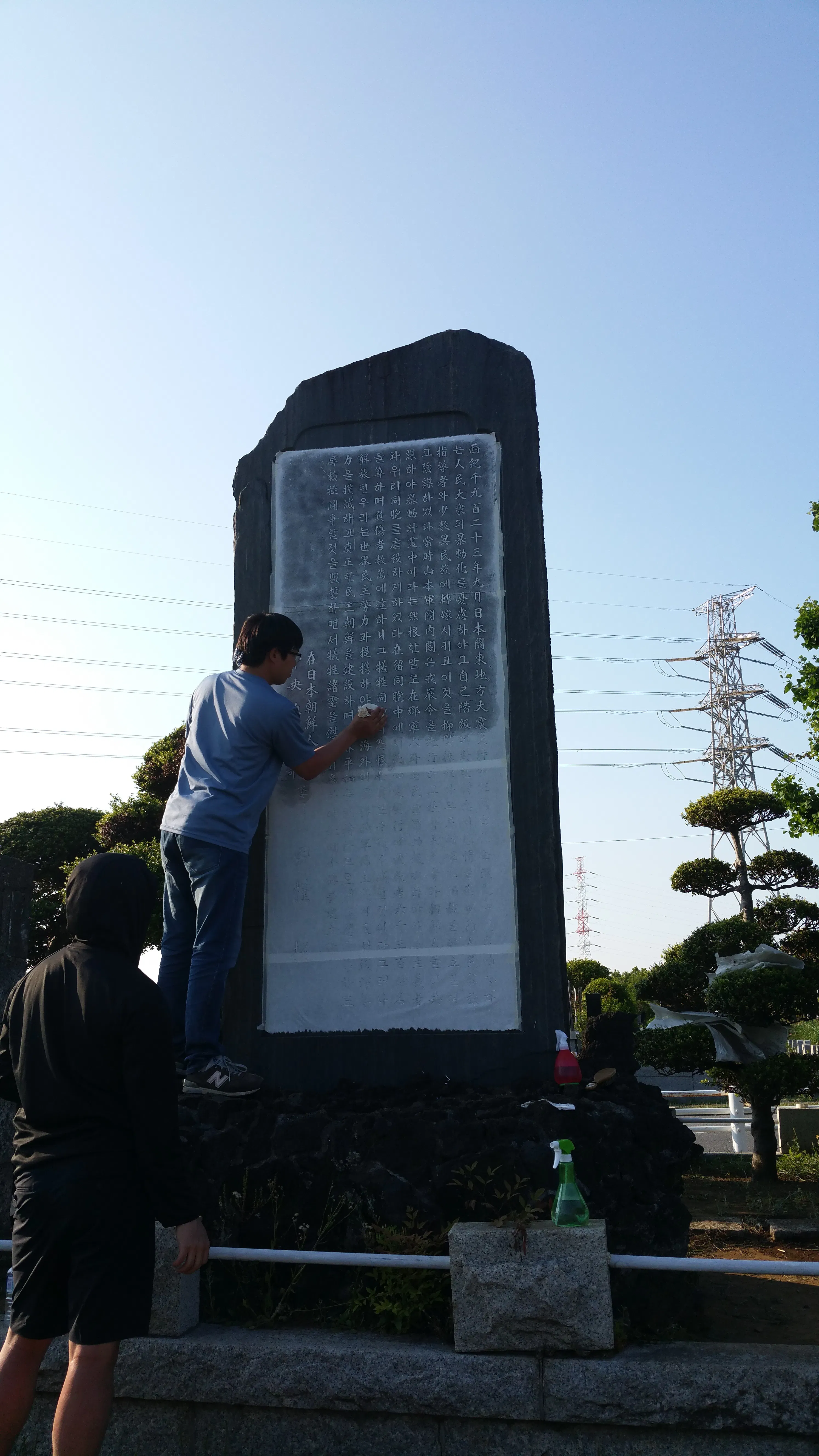 ※写真は慰霊碑の拓本をとる「関東大震災における朝鮮人虐殺の真相究明と名誉回復を求める日韓在日市民の会」(略称:1923市民の会)の韓国側代表