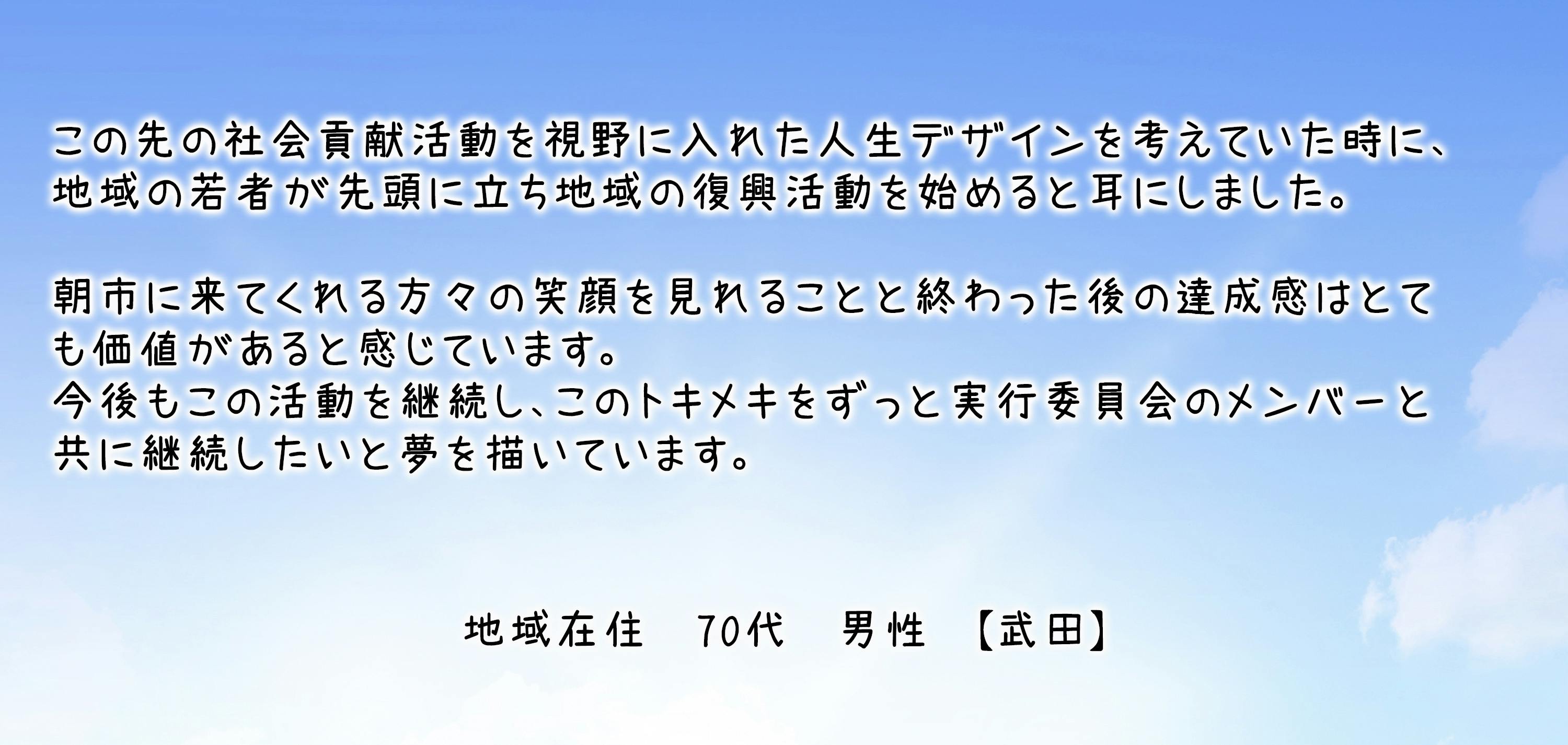 しかし、朝市に来てくれる方々の笑顔を見れることと終わった後の達成感はとても価値があると感じています。