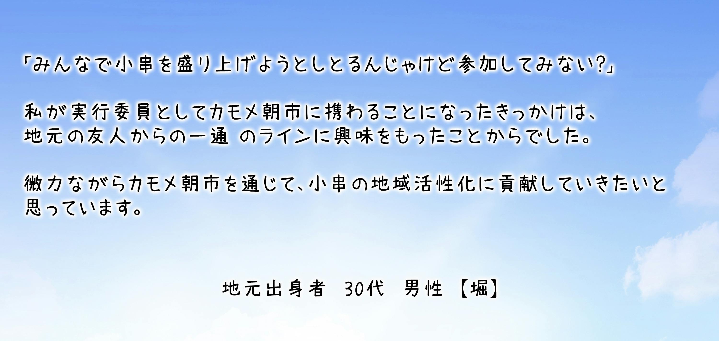 地域創生カモメProjectメンバーの小串に対する思いを綴ります。