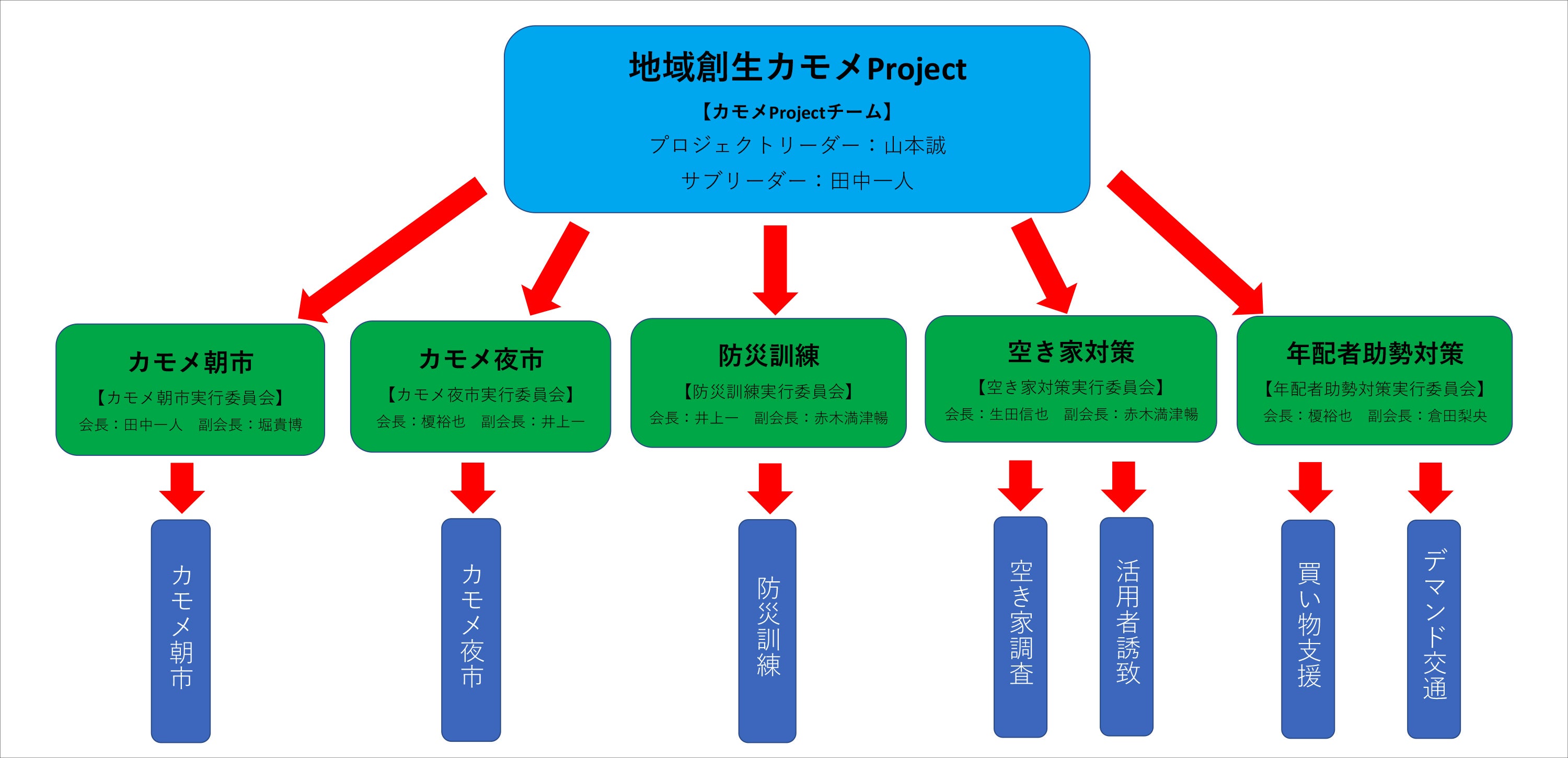 体制図を見て貰えば分かるよう、『地域創生カモメproject』は5つの活動を行なっています。