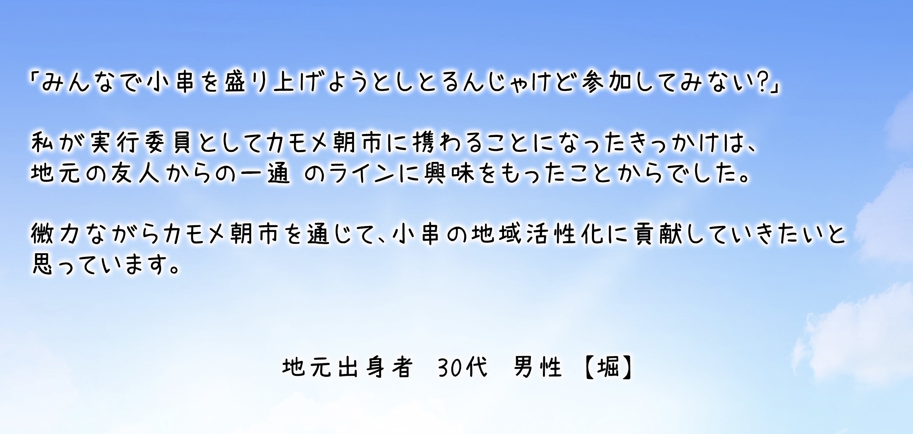 地域創生カモメProjectメンバーの小串に対する思いを綴ります。
