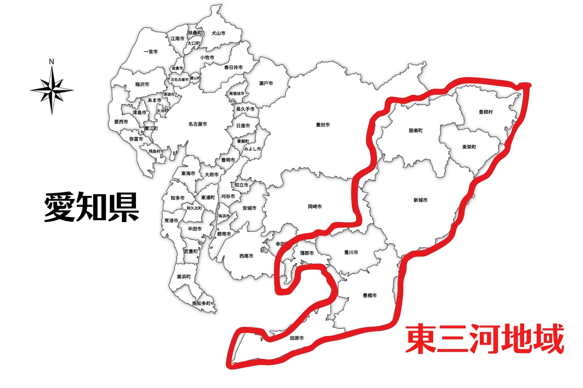 ※東三河地域…田原市・豊橋市・蒲郡市・豊川市・新城市・東栄町・設楽町・豊根村の5市2町1村