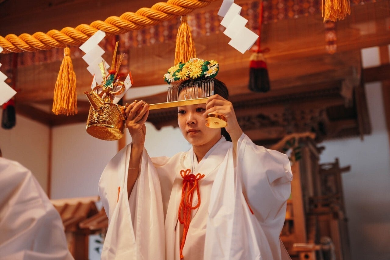 『巫女体験』では巫女の衣装に着替えて巫女としての作法を、『巫女舞講座体験』では実際に結婚式で舞う巫女舞を学びます。 巫女の衣装を着る機会はなかなかないと思います。この機会にぜひ体験してみてください!