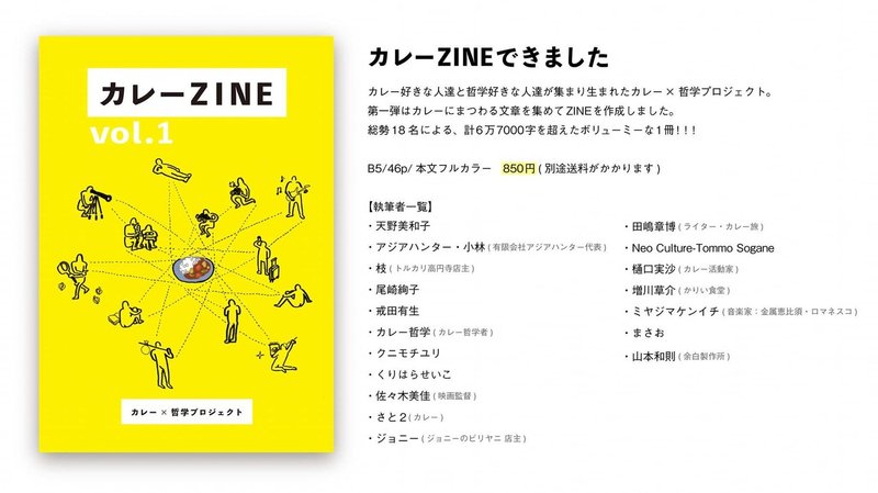 私たちはふだん「カレーのパースペクティブ」という名義で活動しており、カレーにまつわるさまざまな視点をまとめた冊子『カレーZINE』を年に一回ペースで刊行しています。