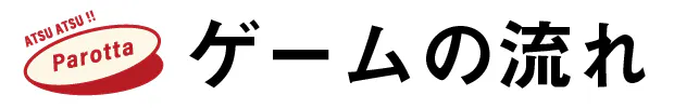 ・三組のセットが揃った時点で、「アツアツパロタ!」と叫びます。他のプレイヤーはその時点で手を止めます。