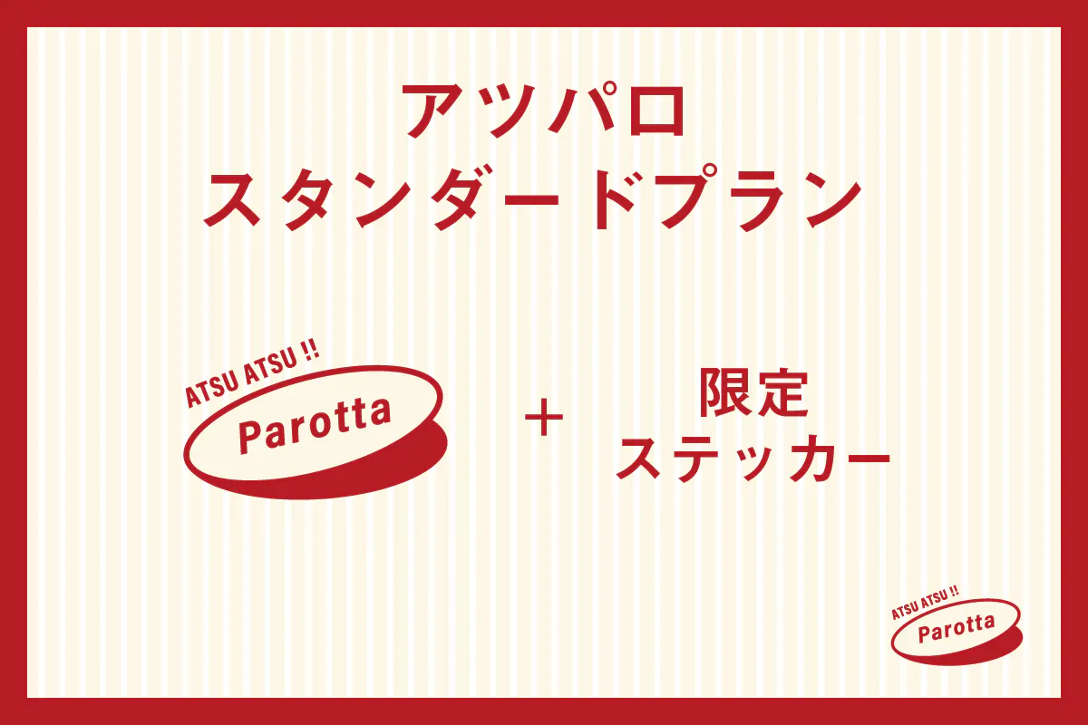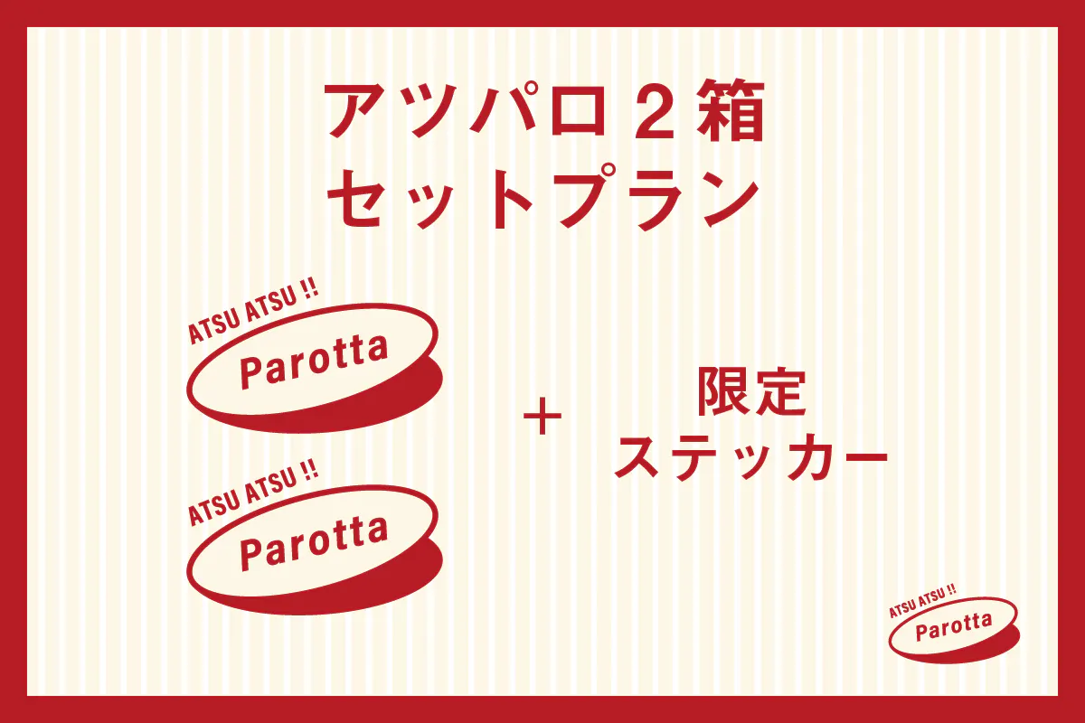 ATSU ATSU!! Parotta 2セットと、「どのインドパンが来るかお楽しみな限定ステッカー」をお届けします。