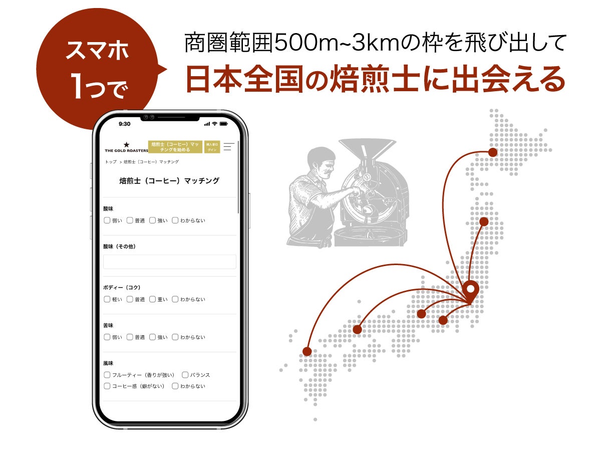 コーヒーショップの商圏範囲は500m~3kmと言われていますがその距離を取っ払い日本全国の焙煎士と出会う事が出来ます!