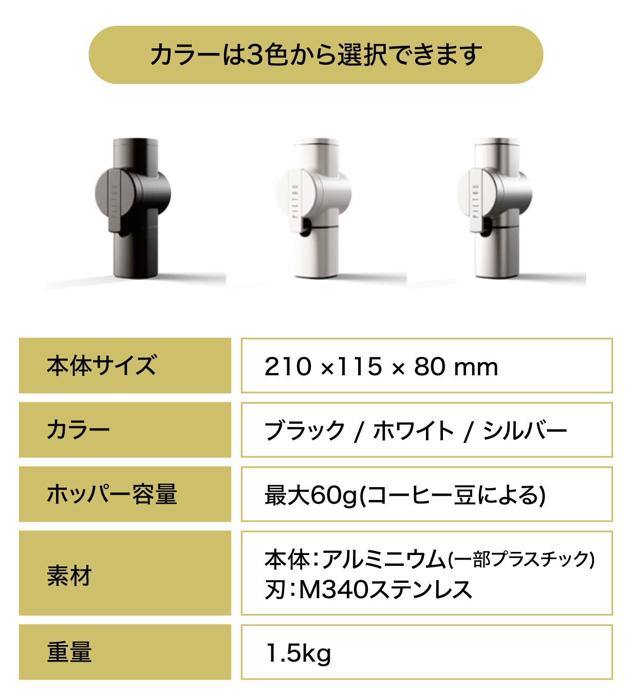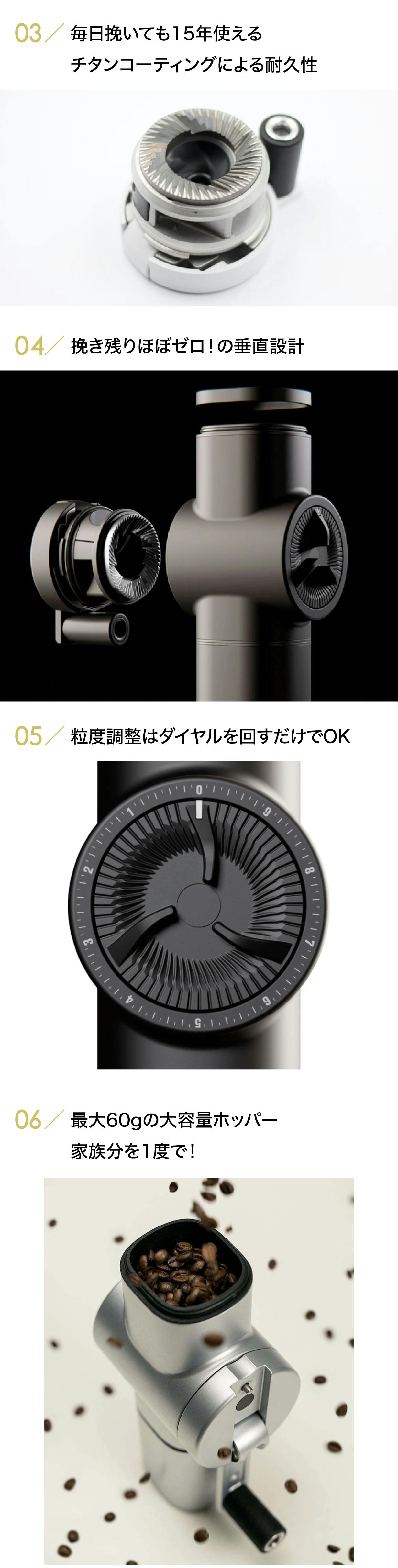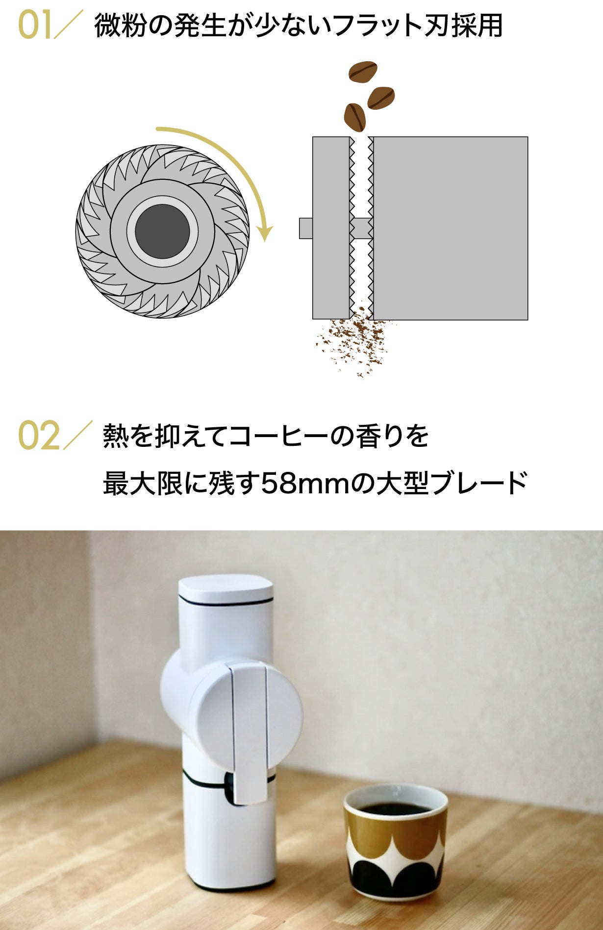 Pietroは口径の大きい58mm設計にすると共に丈夫なスレンレス綱を使用する事で業務用グラインダーにも引けを取らない安定したグラインドが可能になりました。