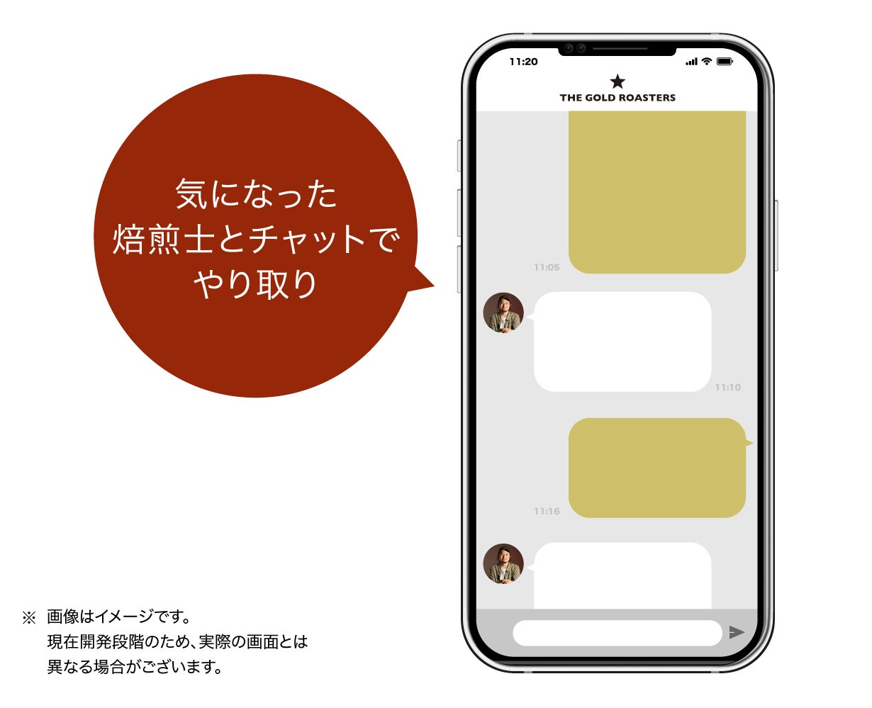 “お客様のまだ見ぬ理想の味へ出会えるきっかけ”としてプラットフォームでは、自分の興味の持った焙煎士とチャットでやり取りする事が出来ます。