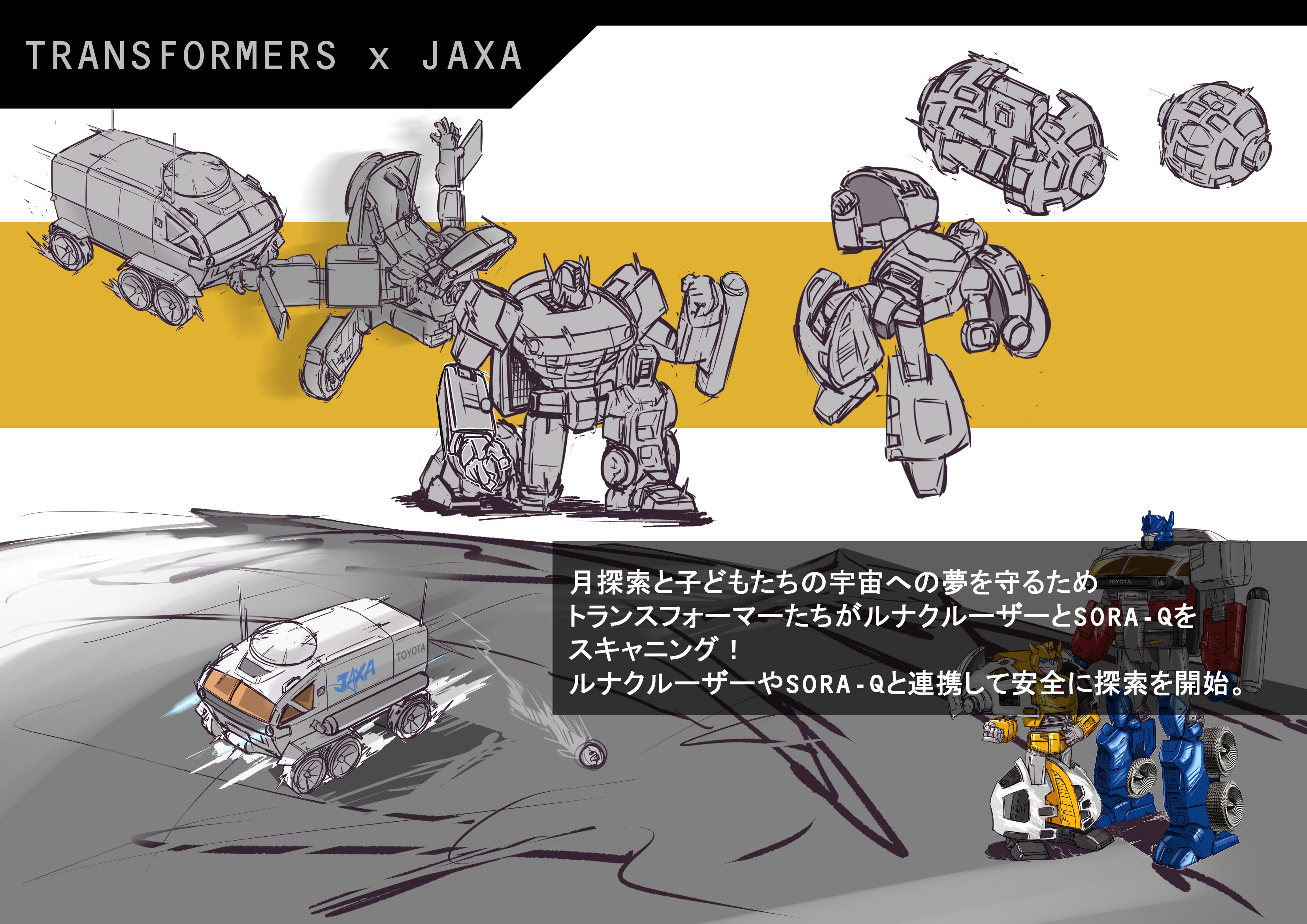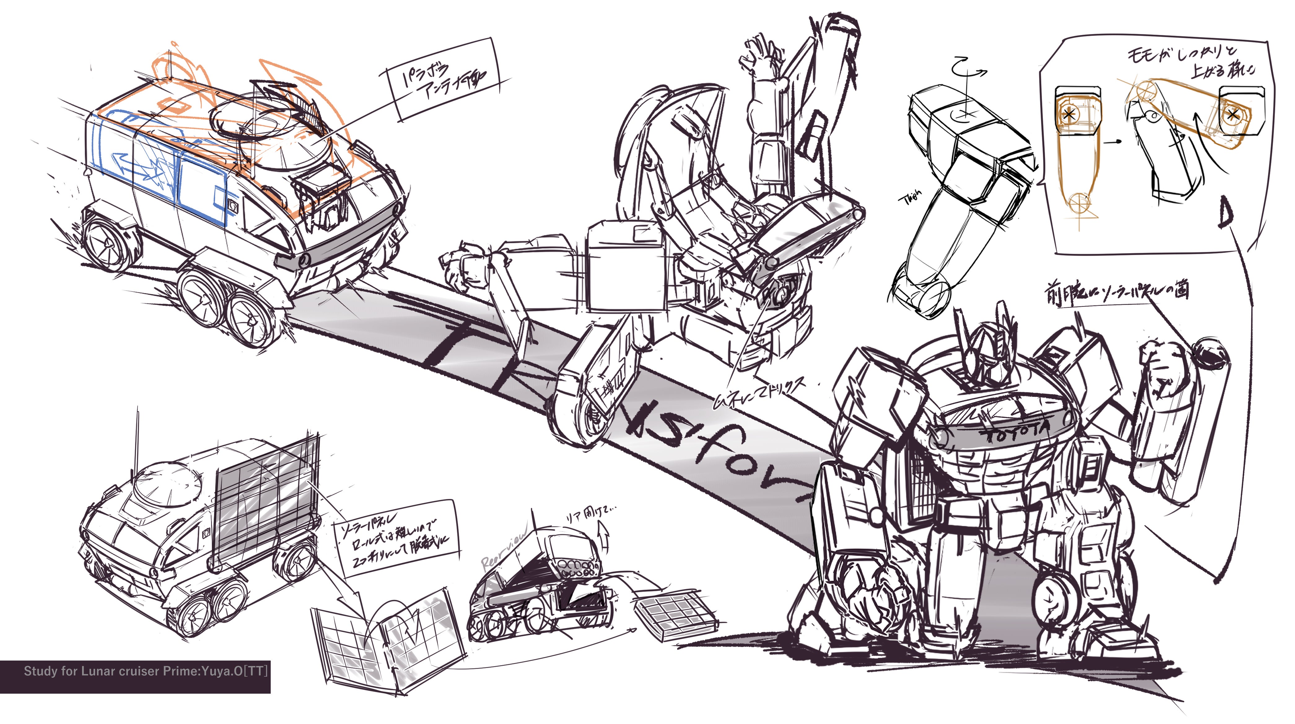 「ルナクルーザー」をトランスフォーマーにしたコンセプトスケッチを描いてご説明させて