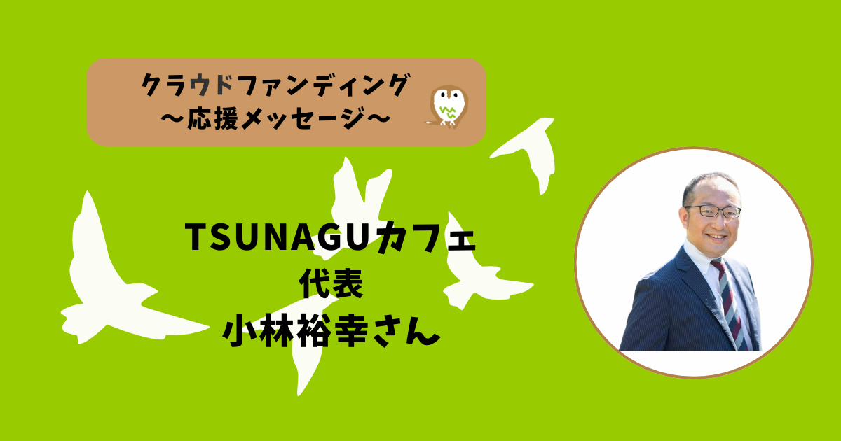 これまで本当に多くの方々に支えられてテラコヤは活動ができています。その方々から見たテラコヤとはどんな団体なのか?を皆さんにもぜひ知っていただきたくご紹介したいと思います!TSUNAGUカフェ代表小林裕幸さんからの応援メッセージ日本の明るい未来、世界に負けない日本を創ることにつながるテラコヤの活動をいつも応援しています! 未来へ羽ばたけ!