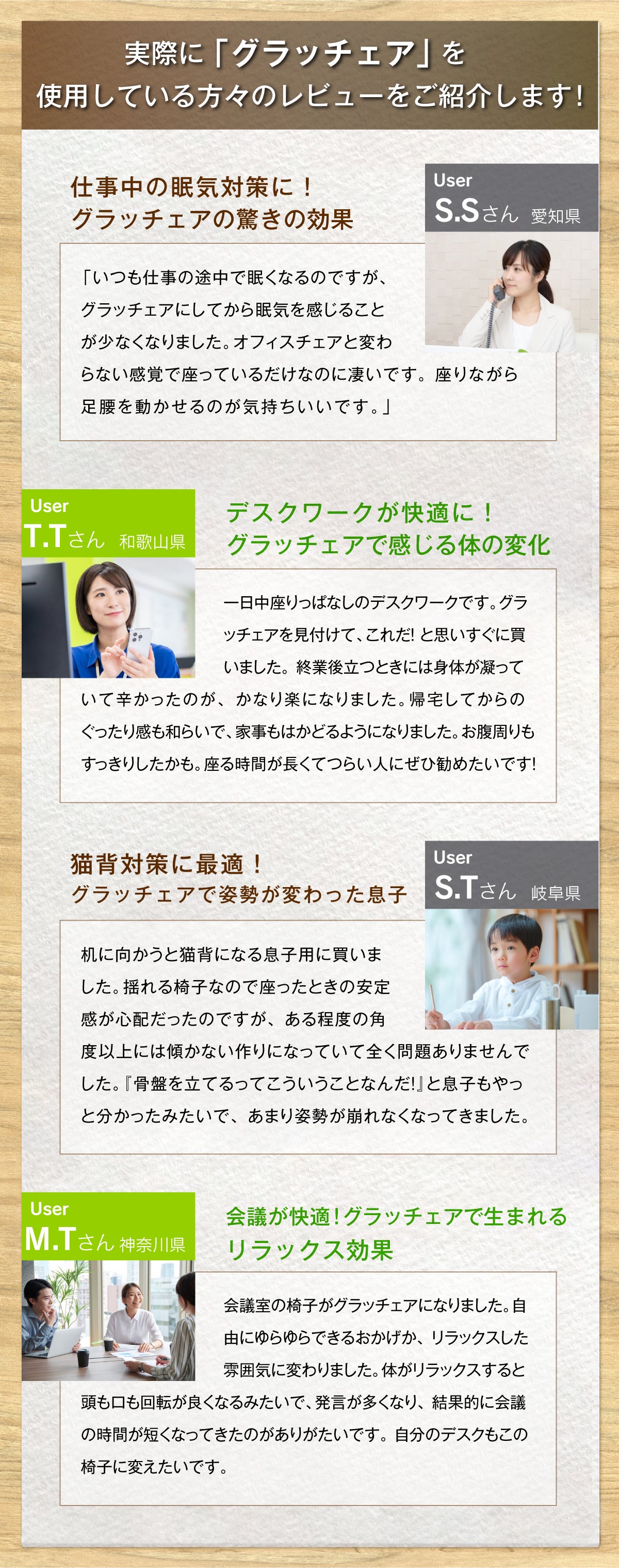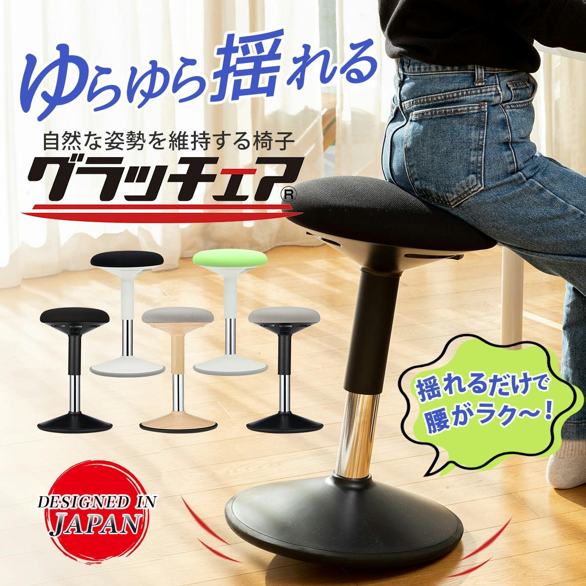 「グラッチェア」はデスクワーカーのつらい腰や肩の負担を減らし、正しい座り姿勢が身に付く革新的なデスクチェアです。
