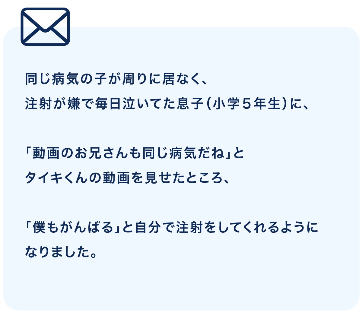 そんな辛かった時にSNSで1つのメッセージが届きます。糖尿病を息子に持つ親御さんからです。
