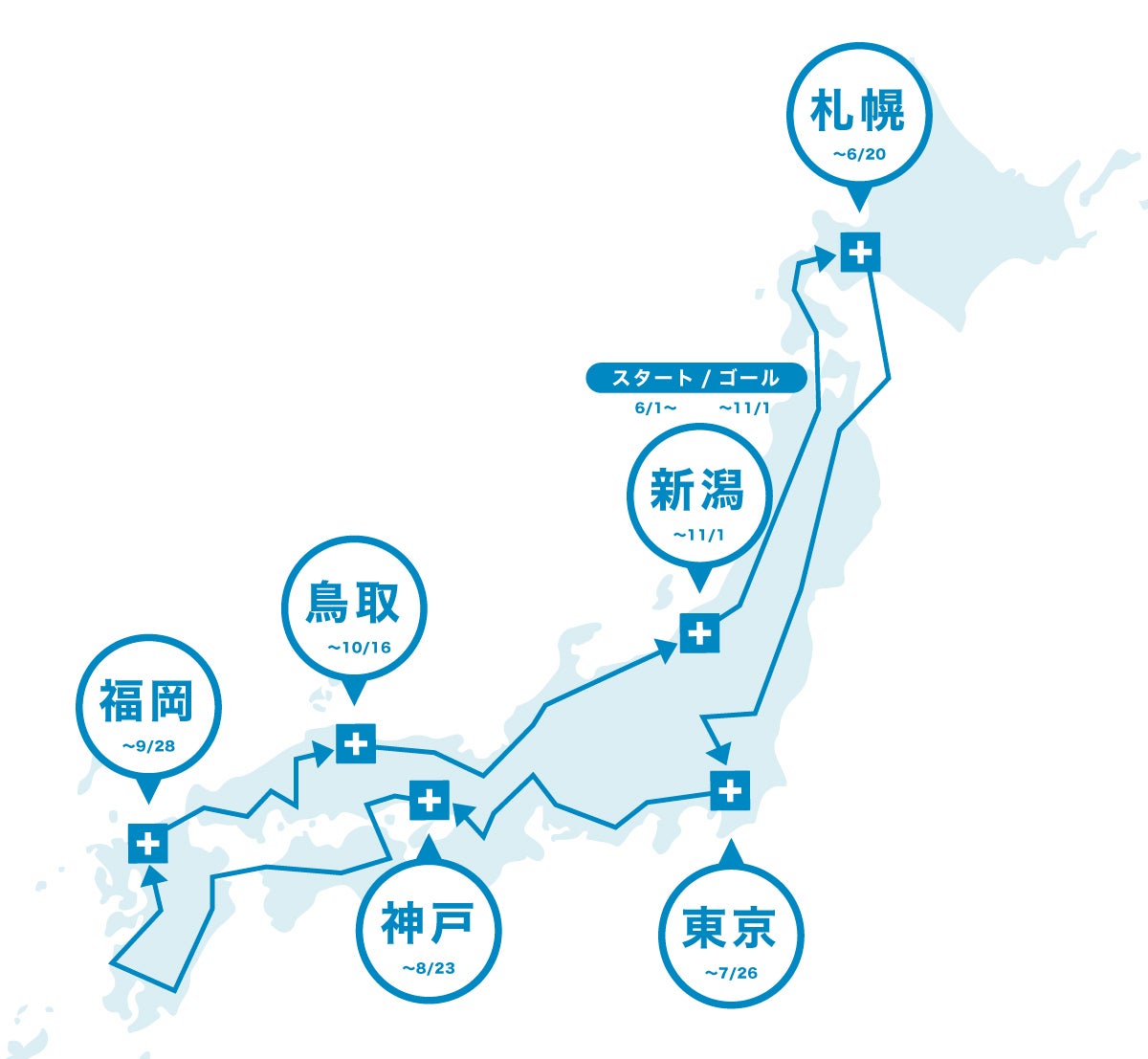 ・実施期間、通院日程の都合上、沖縄や内陸県等通過しない都道府県あり。