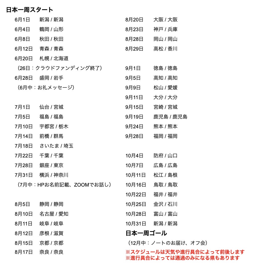 日本一周前半の旅費は自己資金で補うため、時期や通院のことを考慮し6月1日に日本一周はスタートします。
