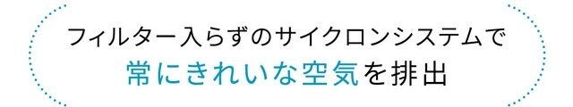 「Purus Air V」はサイクロン式で集塵をしていくので、「フィルターの摩耗による性能低下」はせず、安定的に使用し続けることが出来ます。