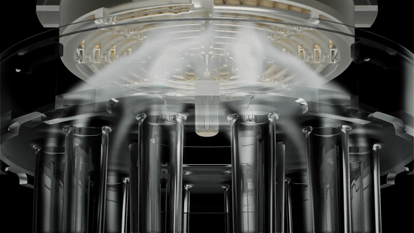 むしろ1つ1つのサイクロン構造を限りなく小型化しているため、とても静かで睡眠や集中したい時も「Purus Air V」はあなたの邪魔をしません。