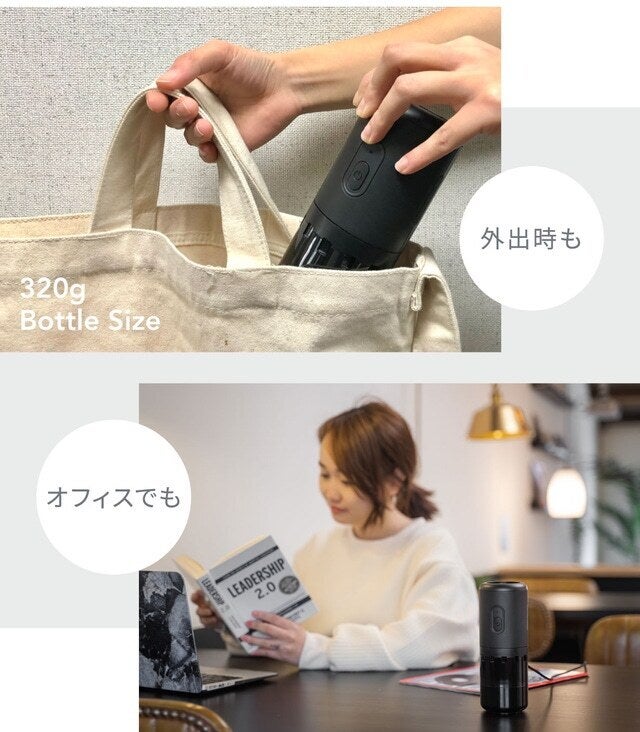 「Purus Air V」はドリンクホルダーに収まるので、車内でも使えます。