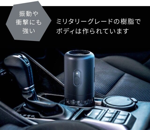 「Purus Air V」 は持ち運ぶのを前提に作られている「ポータブル空気清浄機」なので耐久性にも自信があります。車のドリンクホルダーに置くと衝撃が常にかかりますが、ミリタリー グレードの樹脂を使用する事で、耐衝撃性を持たせました。