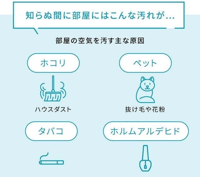 普段当たり前に吸っている空気は、目に見えてないだけで、実は多くの汚れを伴っているんです。