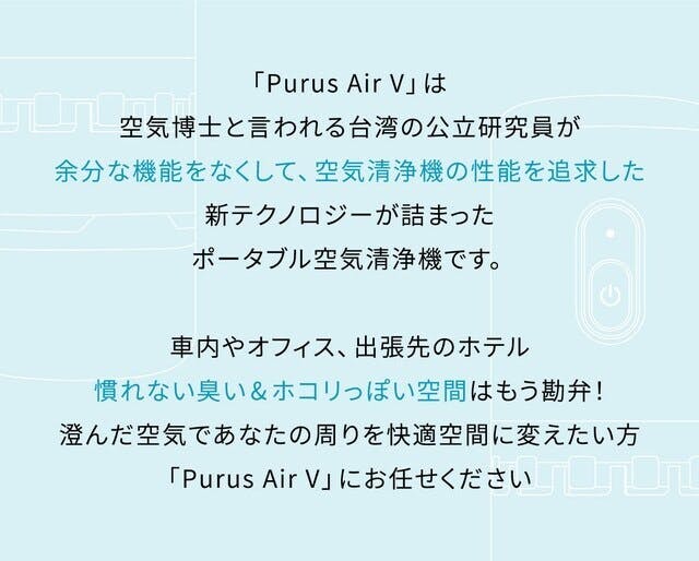 普段商品のプロモーションを手掛けている弊社ですが「Purus Air V」の性能に惚れ込んで今回初めて広告だけではなく製品の販売に踏み切りました!