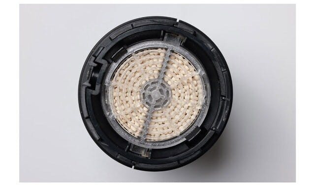 サイクロン構造から効率よく吸入された空気はナノモレキュラーシーブというナノサイズの結晶を通過します。