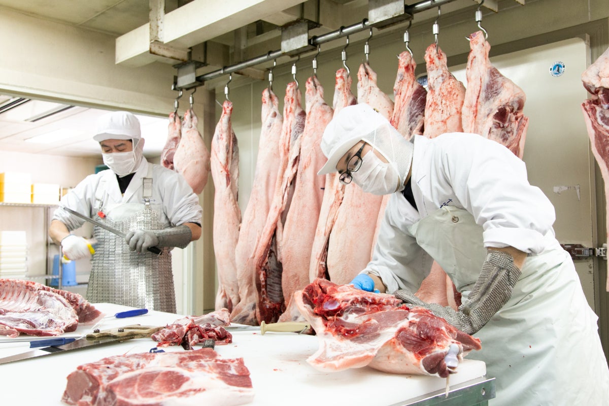 →弊社では豚肉を1頭で仕入れております。豚の命を頂いてから、2日以内に加工作業に入ります。