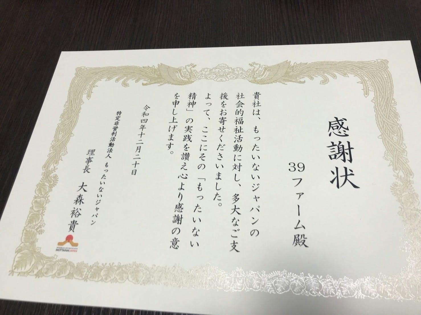 また昨年もったいないジャパン様より初めての賞状もいただき感無量でございます。