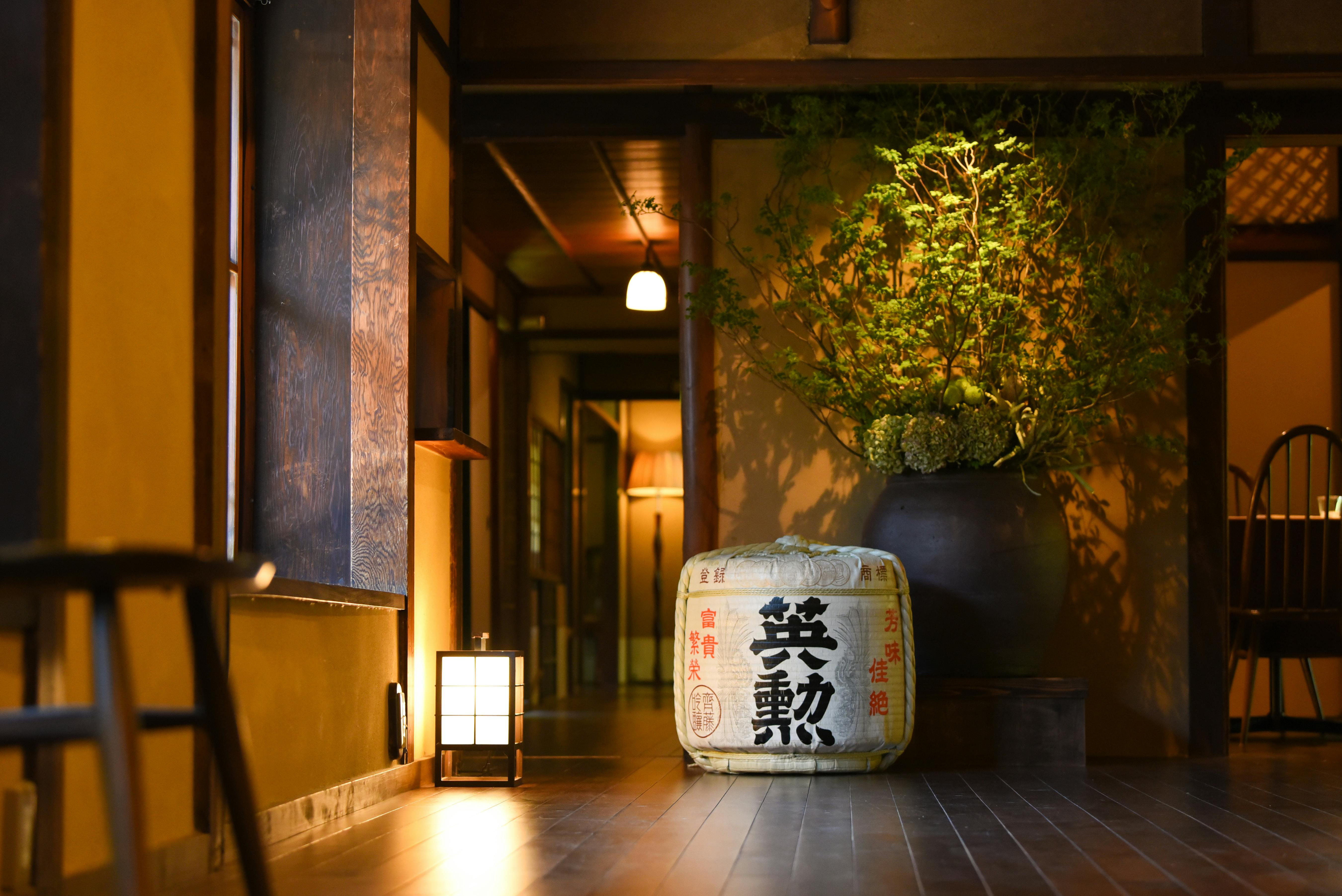 水ノ雅 KYOTO FUSHIMIは伏見の銘酒「英勲」で知られる酒蔵「齊藤酒造」社長の元私邸をリノベーションした京フレンチレストランです。この建物は、明治初期に建てられた築150年の京町家で、店内は上質感と大人の隠れ家的な雰囲気に包まれています。