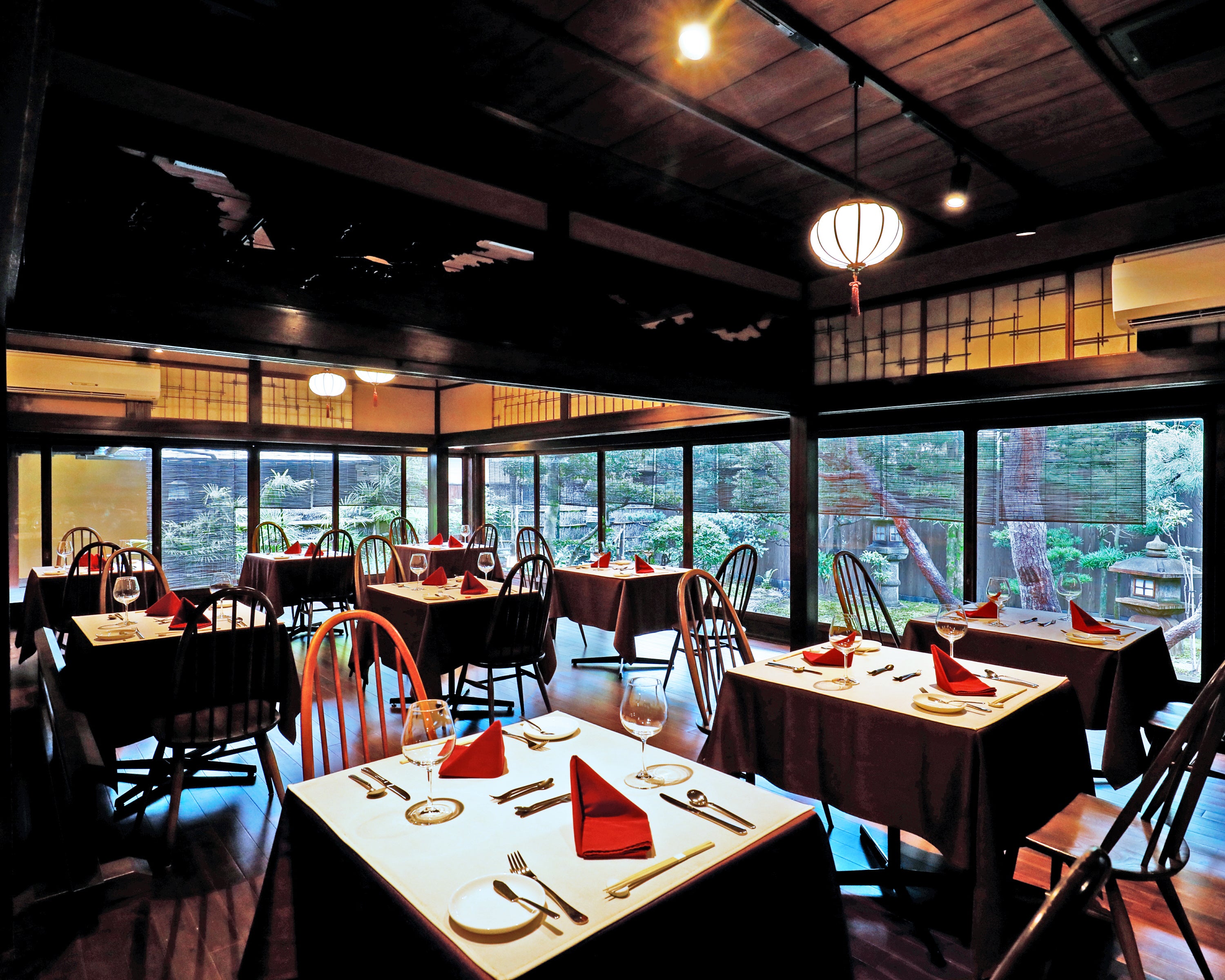 水ノ雅 KYOTO FUSHIMIは伏見の銘酒「英勲」で知られる酒蔵「齊藤酒造」社長の元私邸をリノベーションした京フレンチレストランです。この建物は、明治初期に建てられた築150年の京町家で、店内は上質感と大人の隠れ家的な雰囲気に包まれています。