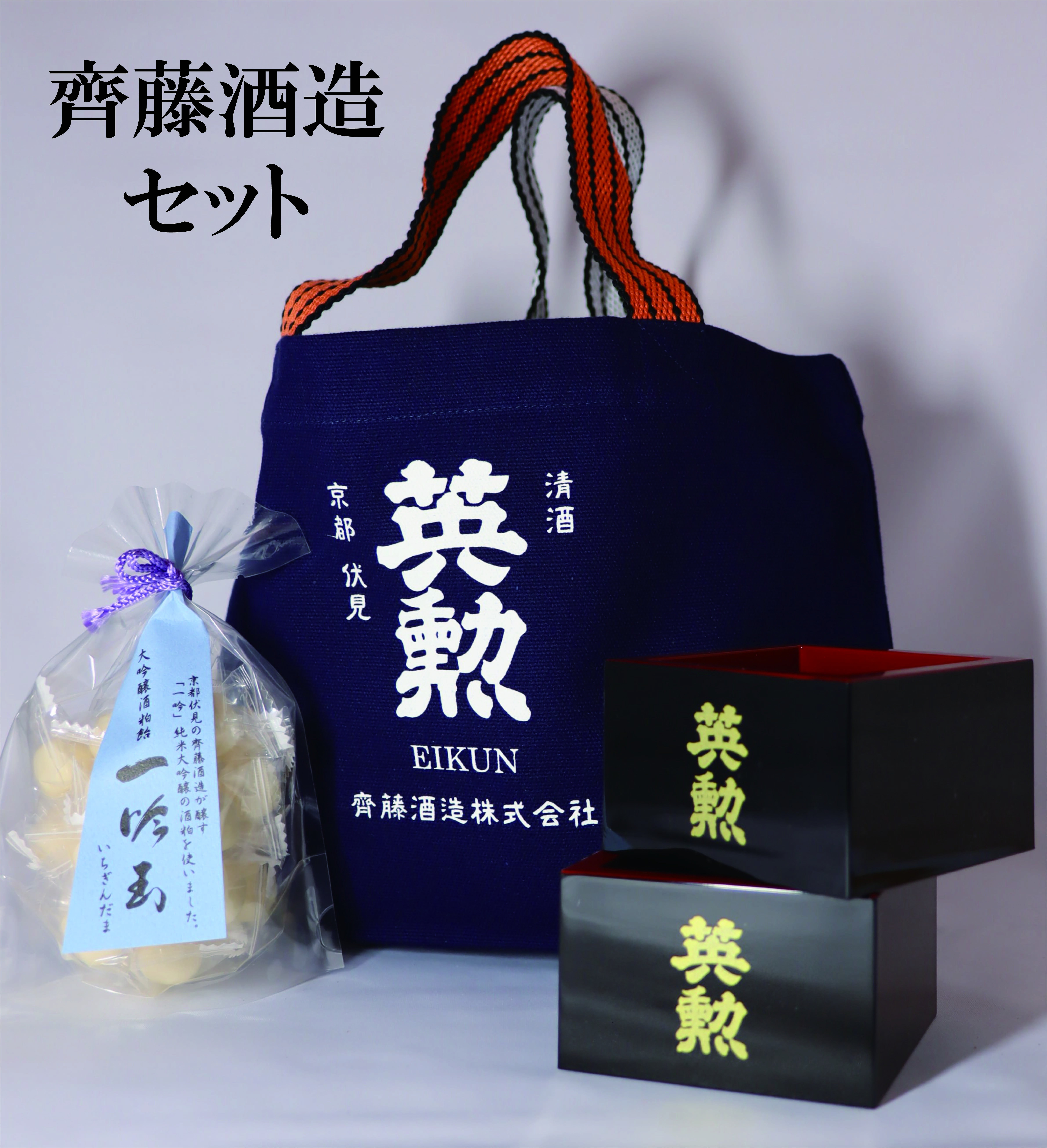 【●齊藤酒造オリジナルミニトート●純米大吟醸酒粕飴 一吟玉●英勲ロゴ入り 一合 塗り升 】