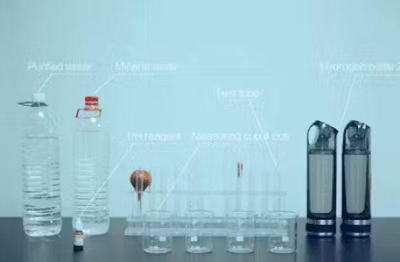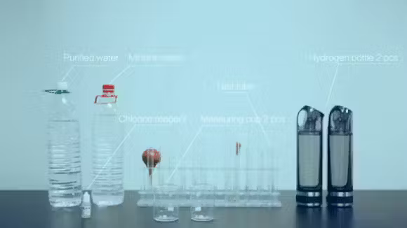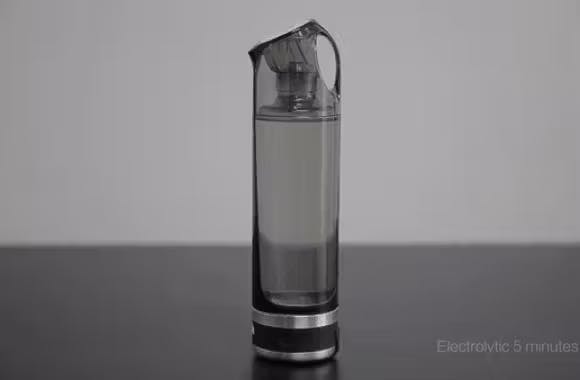 水道水をボトルに入れ、5分待つだけで水素水が生成されます。